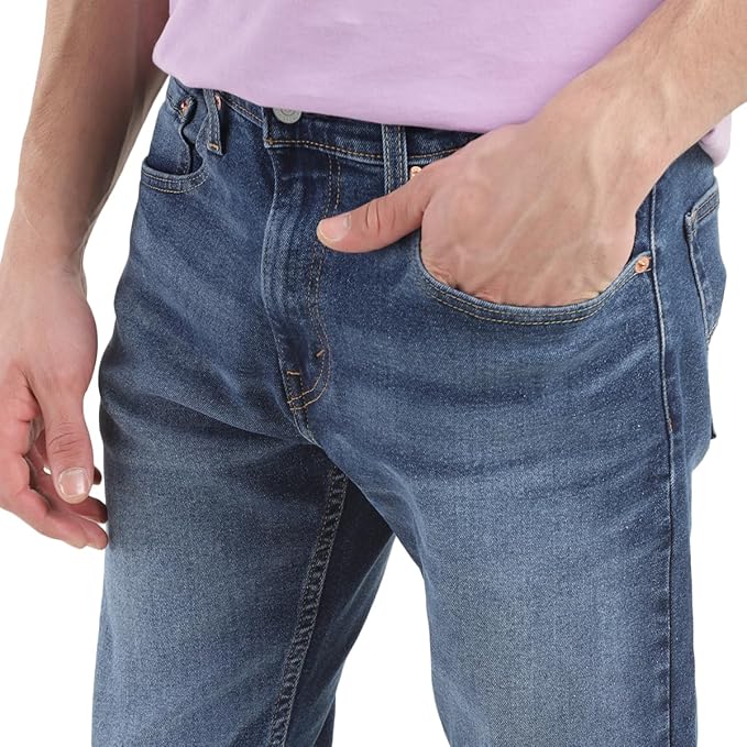 Upgrade your wardrobe with the Levi’s Men’s 512 Slim Tapered Fit Mid Rise Blue Jeans, crafted from premium cotton for all-day comfort and durability. Featuring a modern slim-tapered silhouette, these jeans sit at the waist and narrow down from thigh to ankle, giving you a sharp, contemporary look. The mid-rise fit ensures ease of wear, while the full-length design pairs seamlessly with casual shirts, tees, or jackets for any occasion. Complete with a button closure and authentic Levi’s detailing, these jeans are perfect for men who value both style and functionality.