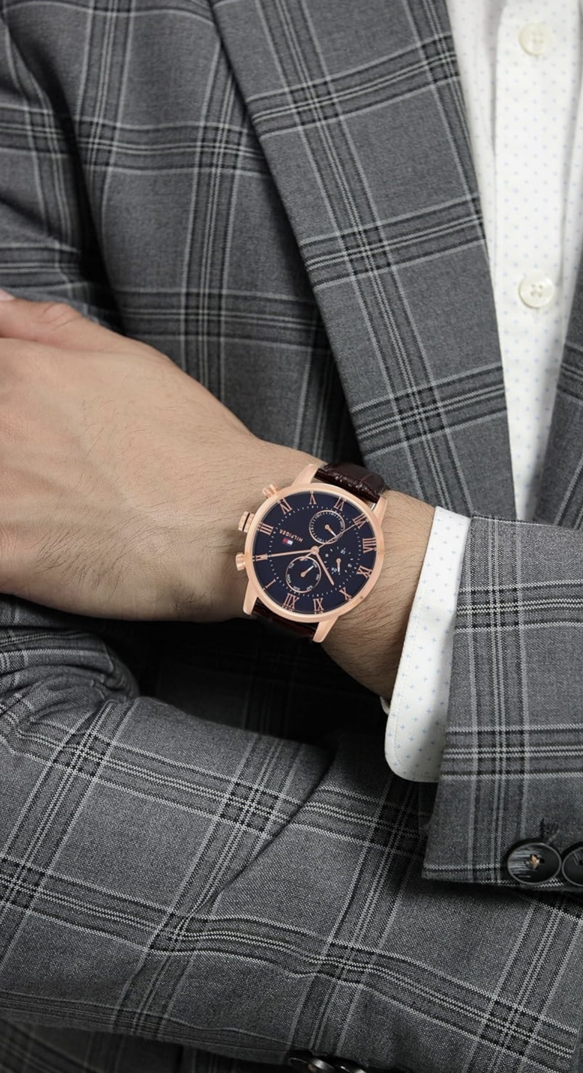Powered by Quartz movement, this analog watch provides precise and reliable timekeeping. It also offers a water resistance depth of 30 meters (3 ATM), making it suitable for daily wear and handling light splashes of water.